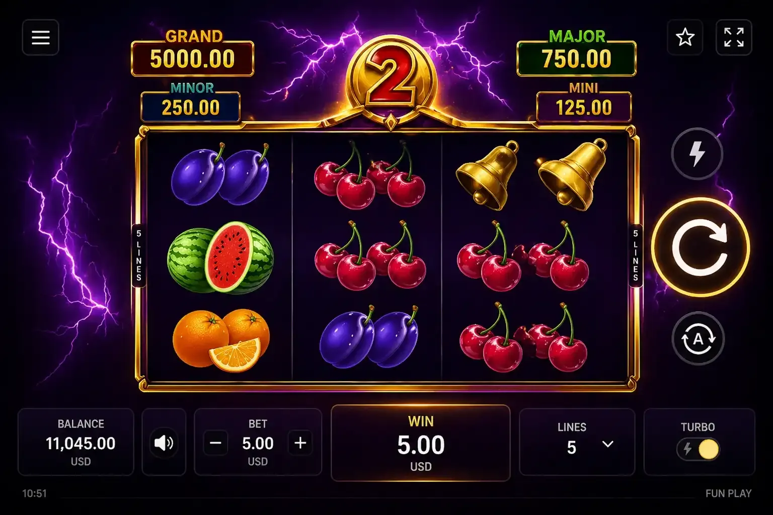 | Автоойын режимі | 10-ден 100-ге дейінгі айналымдар |